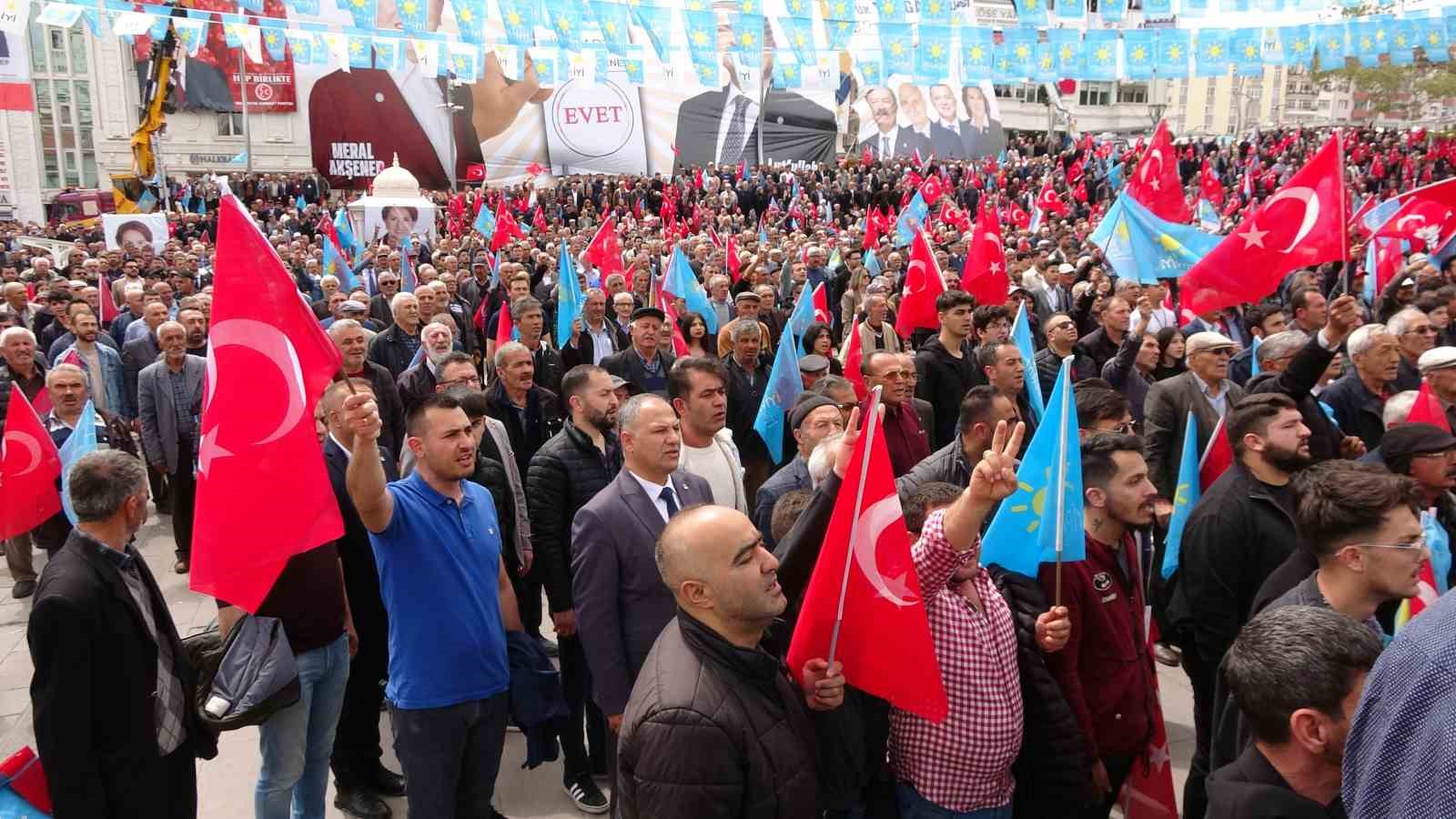 Cumhurbaşkanlığı seçiminin ilk turda yüzde 53 ile biteceğine inandığını belirten Yavaş, “Öyle bir döneme girdik ki inşallah birinci turda yüzde 53-55 ile bitecek. Ama Bugün 65 milyon seçmen var. Bunun 50 milyonu oy kullansa diyelim ki birbirine çok yakın sonuçlar çıktı. 22-23 milyon öbür tarafa. Yani kendileri gibi düşünmeyenlere, kendilerine oy vermeyenlere. Sadece bize oy vermiyorsunuz deyip de terörizmle suçlamak neyin nesi Allah aşkına? Hem söyleyeceksiniz dağda 85 tane terörist kaldı. Ayakkabılarının numarasına kadar biliyoruz diyeceksiniz hem de terör örgütünün propagandasını yapıp bunlar ülkeyi bölecek diye iddia edeceksiniz. Her şeyden evvel o teröristlerin sadece Yozgatlılara gücü yetmez. Evet bu milletin en büyük sigortalarından birisi de Yozgatlılardır. Mesajı hepiniz anlıyorsunuz” dedi.