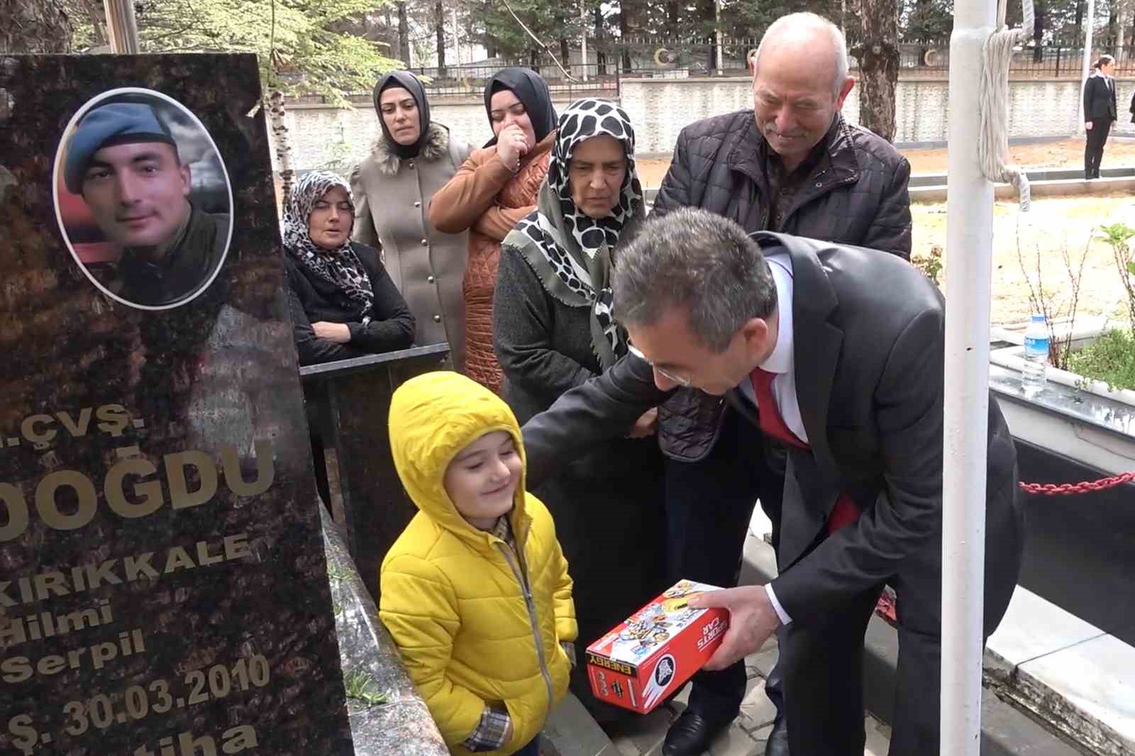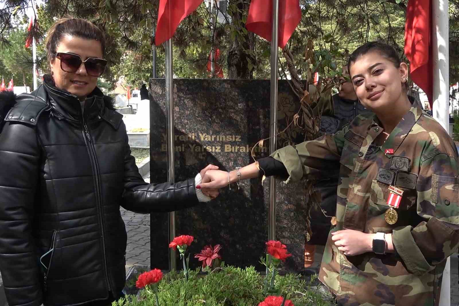 2010 yılında şehit olan babası Fatih Aydoğdu’nun üniformasını giyen Yaren Aydoğdu (17), ailesiyle birlikte babasının mezarını ziyaret etti. Şehit aileleriyle yakından ilgilenen Mühimmat ve Garnizon Komutanı Tuğgeneral Mehmet Ali Durmuş, 17 yaşındaki Yaren ve ailesiyle bir süre sohbet etti.