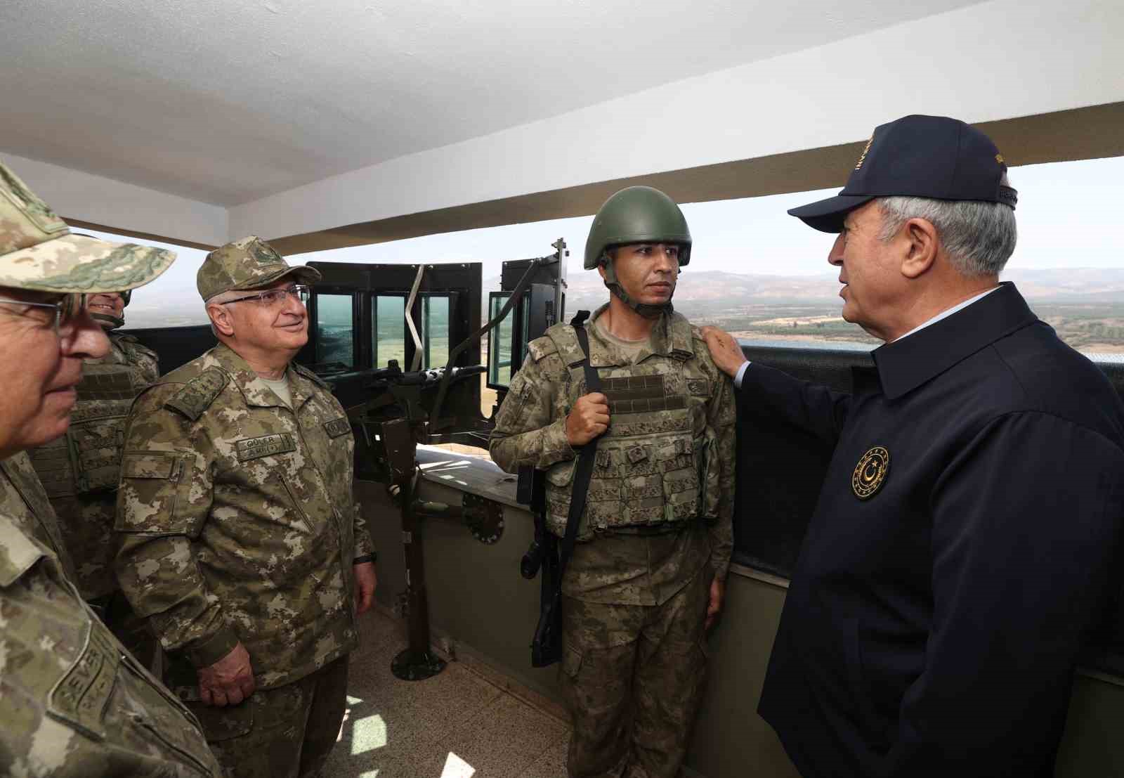 Milli Savunma Bakanı Akar, beraberindeki Genelkurmay Başkanı Orgeneral Yaşar Güler, Kara Kuvvetleri Komutanı Orgeneral Musa Avsever ve 2’nci Ordu Komutanı Orgeneral Metin Gürak ile Suriye sınır hattında inceleme ve denetlemelerde bulundu. Sıfır noktasındaki Ufuk Hudut Karakolu’na giden Akar, gözetleme kulesine çıkarak, çalışmalara ilişkin bilgi aldı. Hudut güvenliği ile ilgili açıklamalara tepki gösteren Bakan Akar, “Bunları söylemek en hafif tabiriyle emeğe saygısızlık, ayıp. Yapılan bu tür değerlendirmeler bizi gerçekten rahatsız ediyor. Bu gerçek dışı beyanlara yönelik söyleyecek laf bulamıyoruz. İsteyen, kendine güvenen varsa yasa dışı geçişi denesin” diye konuştu.