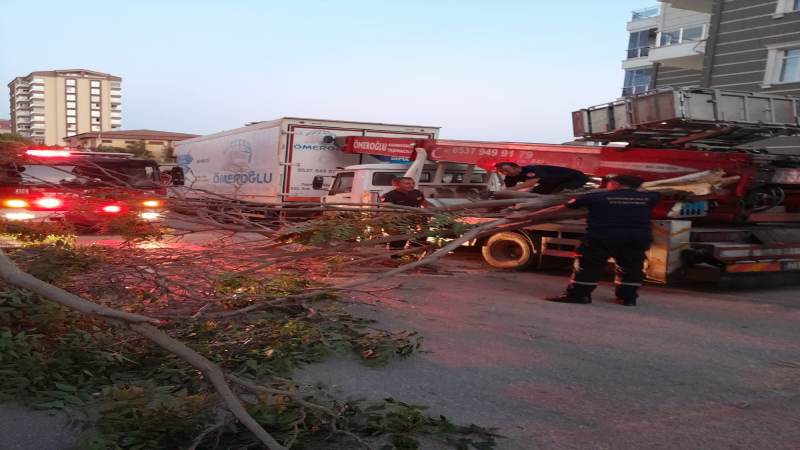 Çallıöz mahallesi cross market yanı rüzgardan devrilen ağacın altında kalan araç kurtarıldı