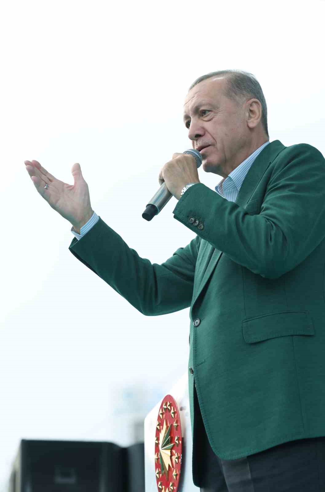 Tüm Sivaslıları selamladığını ifade eden Erdoğan, mitinge katılmayan vatandaşlara selamını gönderdi. Cumhurbaşkanı Erdoğan, ”Masanın etrafında olanlardan bir Sivaslı vardı dimi. Biz hızlı tren dediğimiz zaman ne gerek var diyordu. Ne yazık ki Bay Bay Kemal’in takdimini de o yaptı. Pazar günü bunlara tam bir Osmanlı tokadı yaraşır” şeklinde konuştu.