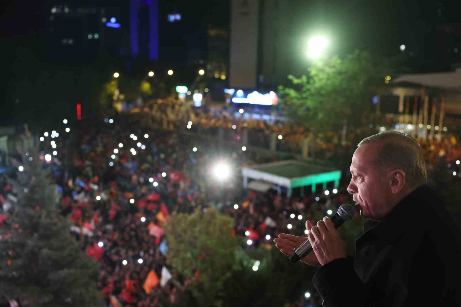 Cumhurbaşkanı ve AK Parti Genel Başkanı Recep Tayyip Erdoğan, AK Parti Genel Merkezinde balkon konuşmasını gerçekleştirdi. Büyük bir coşkuyla karşılanan Erdoğan partiye gelenlere teşekkür etti. 14 Mayıs seçimleriyle bir demokrasi şölenini daha alnının akıyla tamamlandığını belirten Erdoğan sözlerini şu şekilde sürdürdü: