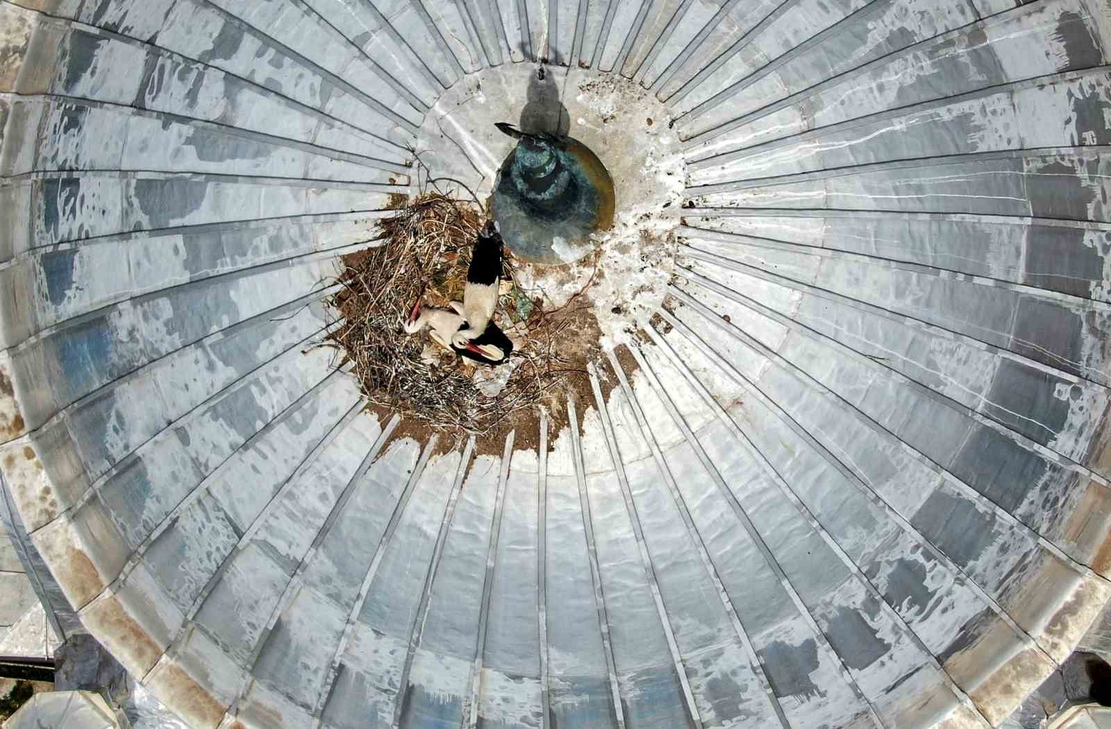 Sivas’ın Gemerek ilçesi Yeniçubuk Merkez Caminin kubbesine yuva yapan leylek ailesi dikkat çekiyor. Her yıl havaların ısınmasıyla göç yolculuğuna başlayan leylekler yavrularına yuva olarak caminin kubbesini seçti. Yeniçubuk İlçe merkezinde bulunan merkez caminin kubbesine yuva yapan leylek Çifti caminin ‘Leylekli Cami’ olarak anılmasına neden oldu. Yaklaşık 25 yıldır aynı yere gelen farklı leylekler yavrularıyla birlikte drone ile havadan görüntülendi.