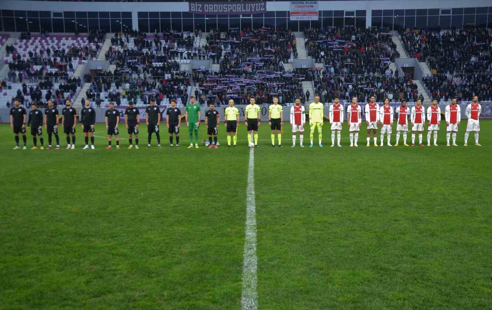 Yeni Ordu Stadyumu’nda düzenlenen maçın başında, deprem bölgelerinde görev alan arama ve kurtarma ekiplerine sporcular tarafından çiçek takdim edilirken, birlikte poz veren 2 takım sporcuları, maç genelinde de dostça mücadele etti. Tribünler maç boyunca, depremden etkilenen illerin plaka kodlarına göre tezahürat yaptı.