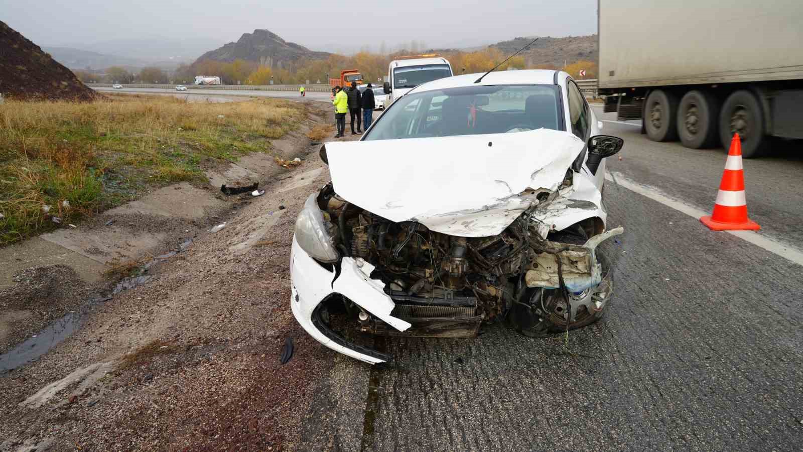 Kırıkkale’de yağmur sebebiyle kayganlaşan yolda kontrolden çıkan otomobilin bariyerlere çarptığı kazada 2 kişi yaralandı.