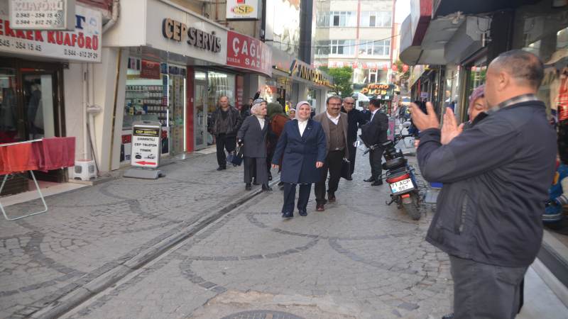 Hüseyin Kâhya Parkı ve Zafer Caddesi esnafının ‘‘ Kırıkkale’mize kadın eli değecek olması hepimizi heyecanlandırdı, sizlere olan desteğimiz tam’’ diyerek karşıladı. TABAK yaptığı açıklamada ‘‘ samimiyeti ile beni bağrına basan baba ocağım Kırıkkale’mizin esnafında ahilik geleneği halen devam ediyor. Gönlü güzel esnafımıza söz veriyorum. İnşallah Parti Delegelerimizin teveccühleri, Genel Başkanımız Sayın Recep Tayyip Erdoğan ve Genel Merkezimizin tensipleri ile aday adaylık sürecimiz adaylıkla devam ederse, Kırıkkaleli hemşehrilerimizin desteği ile Belediye Başkanlığımız döneminde, Esnaf Meclisleri kurarak, Esnafımızın yönetime doğrudan katılımını sağlayacağız. Katılımcı demokrasiyi önemsiyorum. Ortak akıl, başarının anahtarıdır. Esnaf Kardeşlerime samimi karşılamaları için teşekkürediyorum.’’ dedi.