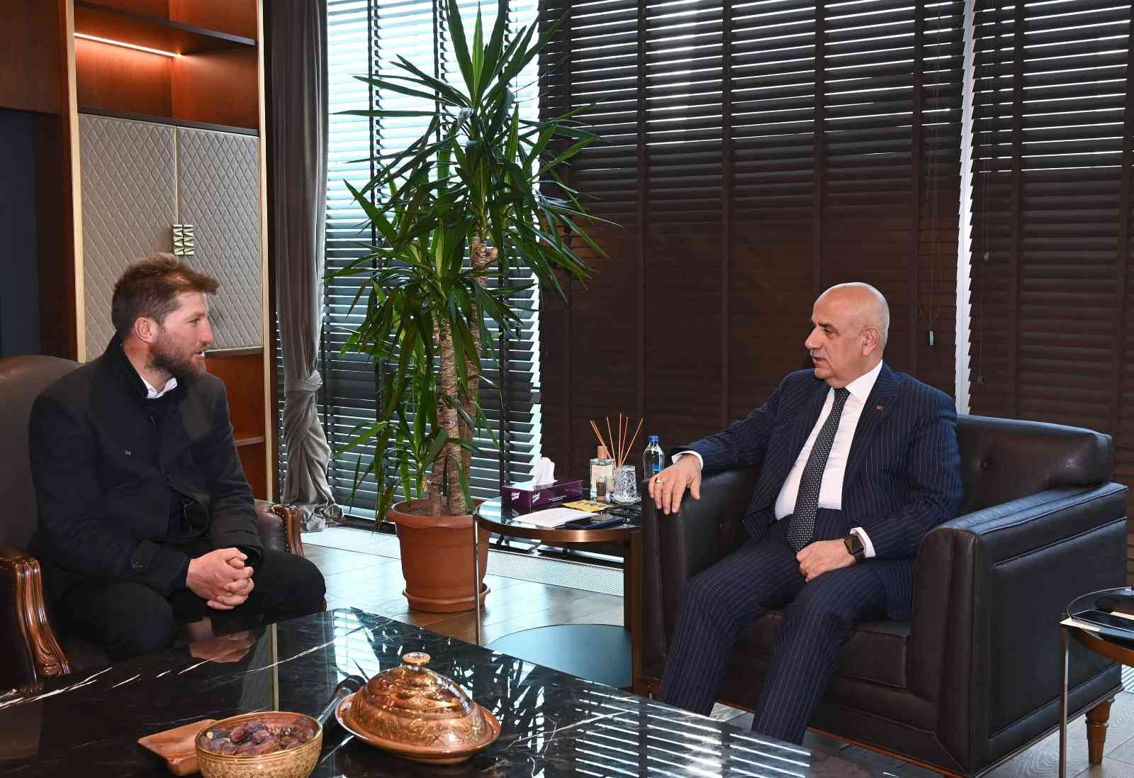 Tarım ve Orman Bakanı Vahit Kirişci, sosyal medyada hayvanlarını otlatırken okuduğu türkülerle tanınan Sivaslı çiftçi Tarık Kara’yı makamında ağırladı.