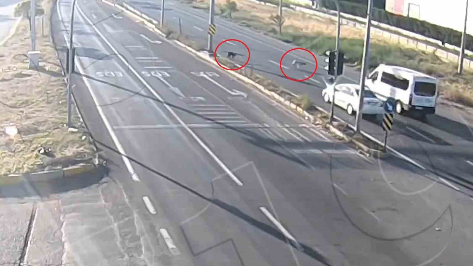 Kırıkkale’de karayoluna çıkan iki köpeğin otomobillerin çarpıştığı kazadan son anda kurtulduğu anlar güvenlik kamerasınca görüntülendi. Diğer bir kazada ise alkollü sürücü, otomobili ile iş yerine çarptı.
